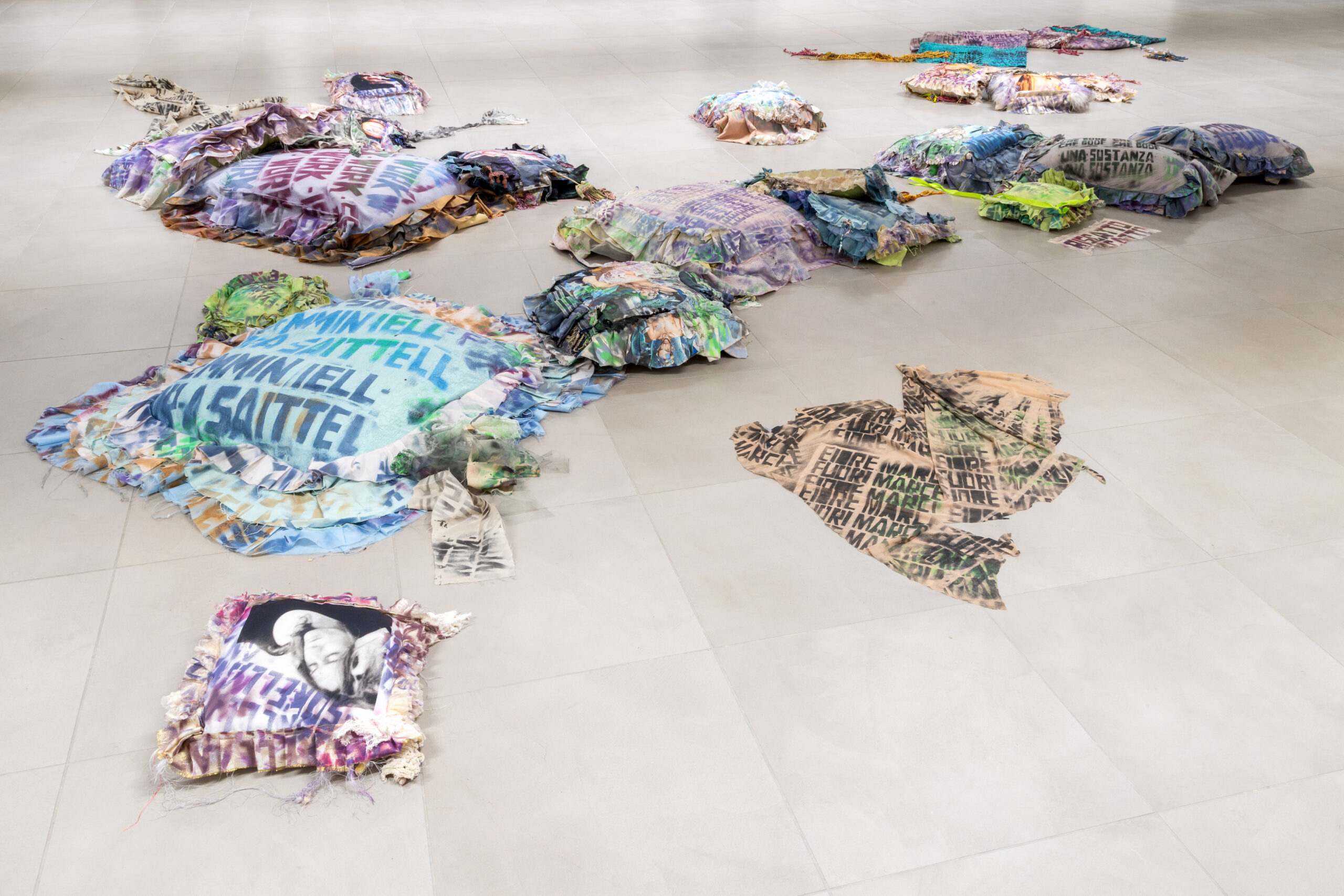 Dario Biancullo (1986) è un artista e designer napoletano. La sua pratica transdisciplinare indaga metodi di autodeterminazione queer e denuncia sociale “per devianza” nel campo delle arti visive, performative e del “fashion” attraverso autoinchieste con video, installazioni ambientali e spray paint art su tessuto.